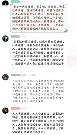 接着,团支书又带领我们观看习近平回信内容和抗疫实记视频,大家纷纷表露心声,表达了自己对广大奋斗的青年人的崇高敬意,赞誉他们是大风中最美的“逆行者”,在他们身上,人性在闪光,党徽在闪光。