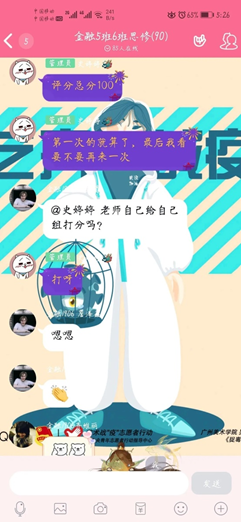 2020年4月29日,金融1906班以QQ作为媒介开展了“家风小故事”的小组活动疫情尚未结束,形势依然严峻,战役仍在继续,为了更好地贯彻社会主义核心价值观,我班于4月29日上午开展了“家风小故事”的小组活动。